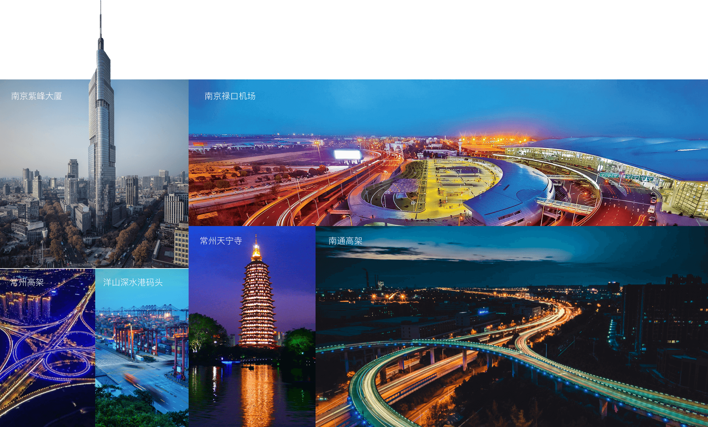 南京地铁三、四、十号线,南京地铁S1号线,S8,宁和城际(S3);南京江北大道、南京紫峰大厦、禄口机场;南通高架;无锡地铁一、二号线;上海金茂大厦、洋山深水港码头、上海地铁;苏州高架;常州天宁寺、常州高架。