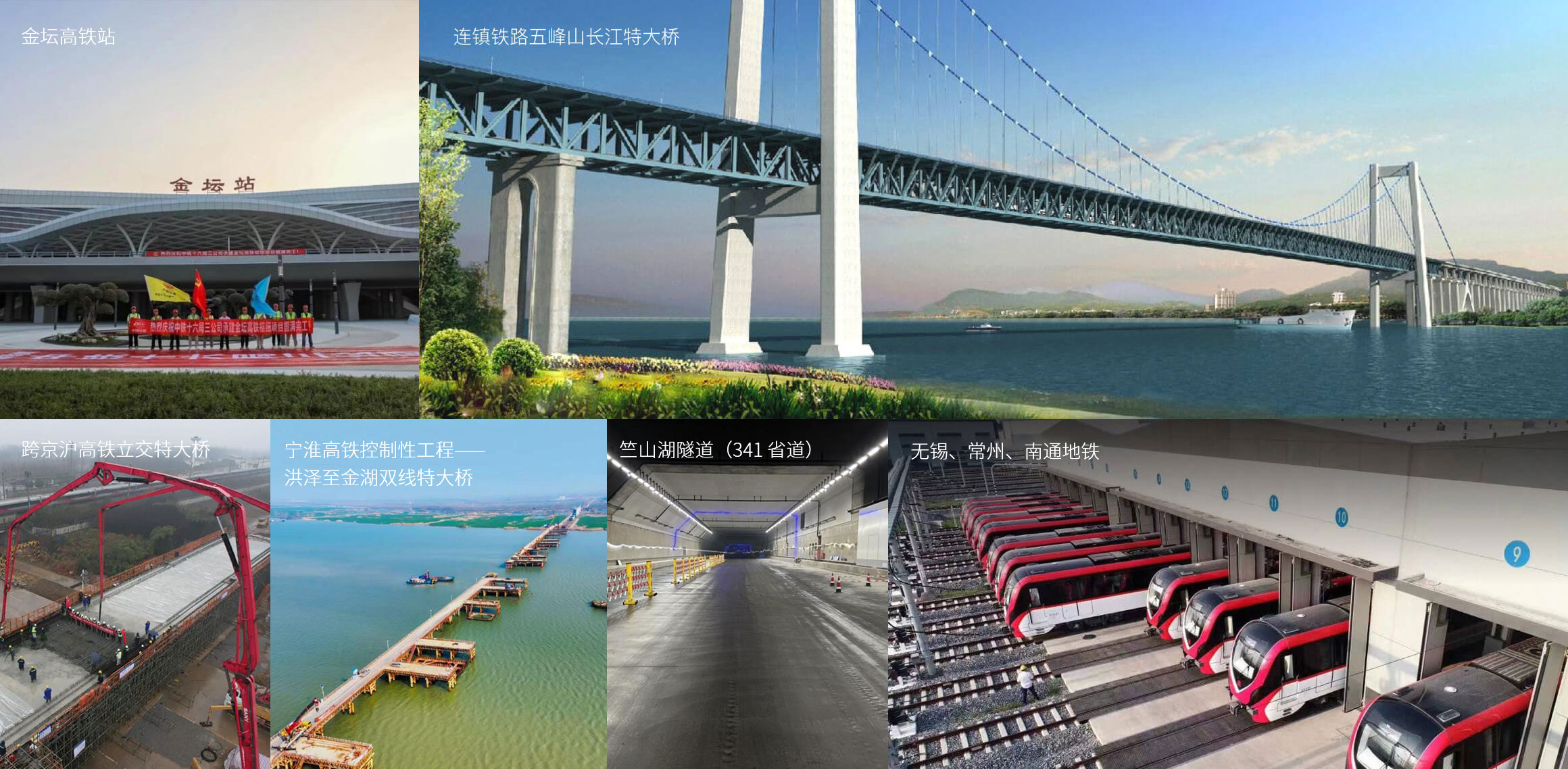 竺山湖隧道(341省道);北沿江高铁;宁淮城际铁路;常州腾龙路改造;宁芜铁路扩能改造;江苏南沿江城际铁路;宁句城际轨道交通;南京丰子河路项目、南京横江大道、南京南部新城;江海西路高架、凤翔路高架;无锡地铁;常州地铁;南通地铁;连镇铁路五峰山长江特大桥;徐盐铁路。